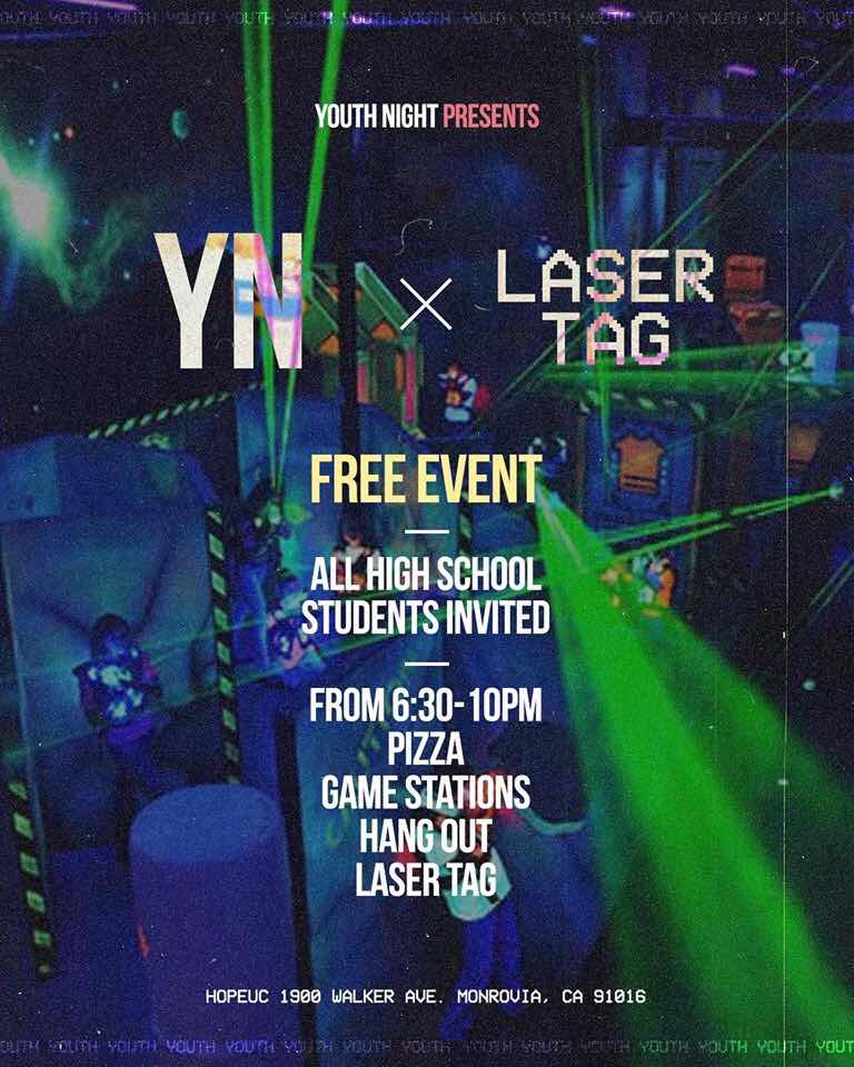 This Friday a Monrovia church is going to turn its “whole auditorium into a giant laser tag arena” as part of a free event for high school students. From 6:30-10 p.m. The event will be held at Hope Unlimited Church (1900 Walker Ave., a block south of Duarte and a block east of Myrtle).