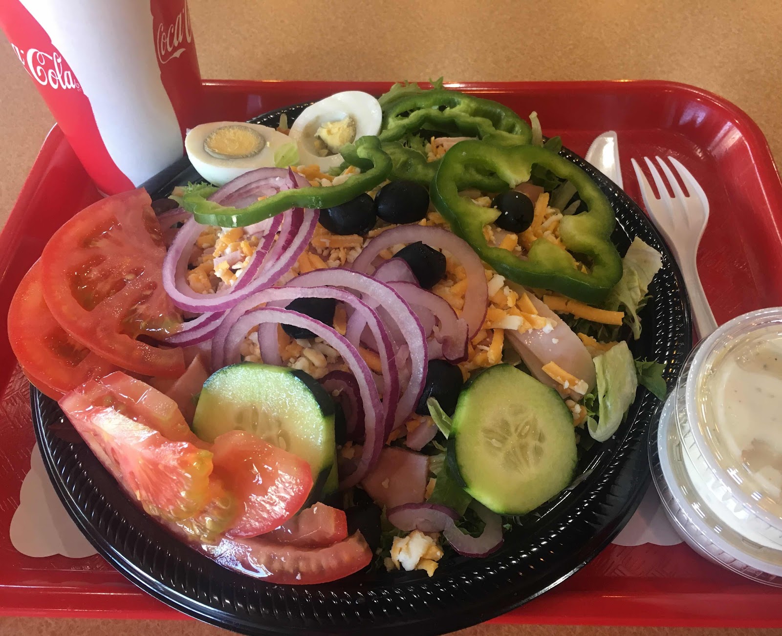 Lunch at T-Burgers, on the south side of Foothill a block east of Magnolia. Got the Chef’s Salad for $8.99 and an iced tea for $1.98. Nice. Veggies were fresh and service quick.